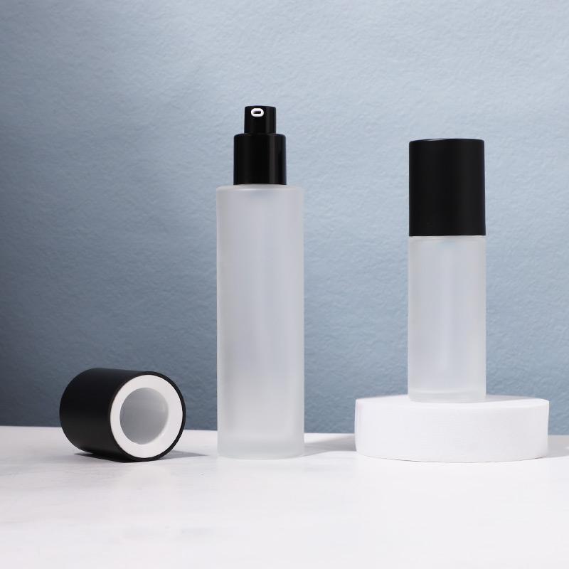 This frosted straight round glass bottle is available in 50ml and 100ml capacities. Suitable for pump head, and spray head, can be used for toner, lotion, makeup spray, and other cosmetics packaging, wide range of applications.
