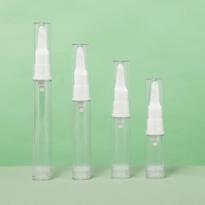 This airless bottle is made of AS material, which is highly transparent and convenient for users to check the remaining amount of the product. It is suitable for packaging eye cream and travel size.