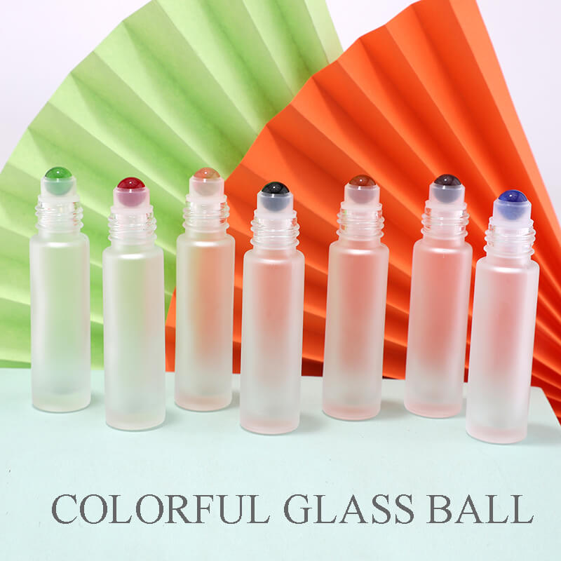 Luxury frosted glass roll on bottle with colorful glass roller ball stainless steel ball description