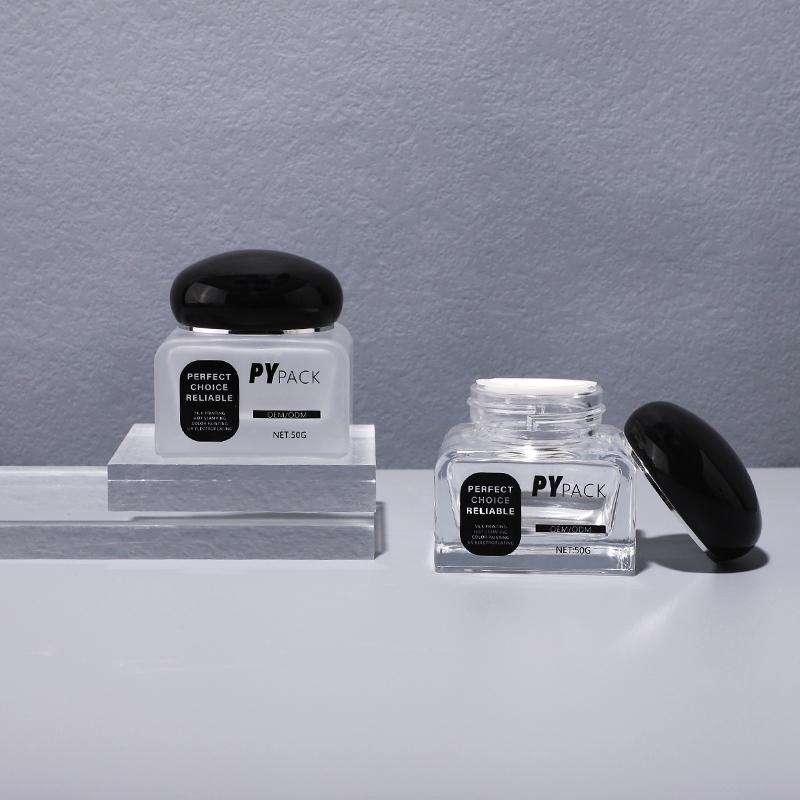 Senior clear frosted square cosmetic glass bottle set with spherical lid