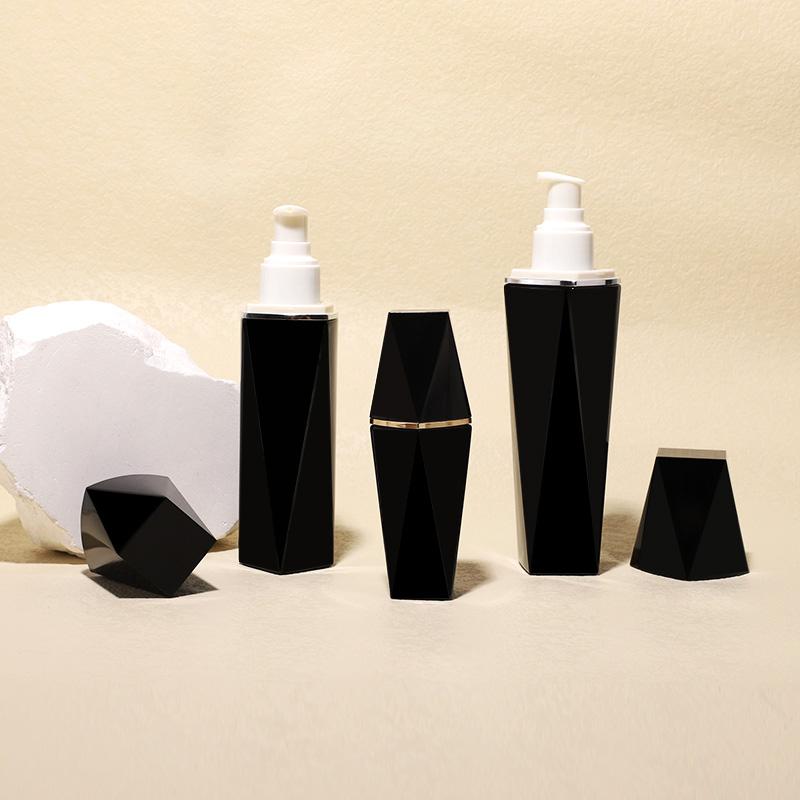 The unique black set of diamond-shaped three-dimensional glass bottles is high-end and highlights the texture of the essence. Customized services can be accepted, such as customized colors, customized logos, etc.