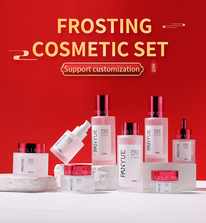 The cosmetic bottle set with aluminum pump/printing cap be used for skin care packaging. We can provide custom service as your requirement.