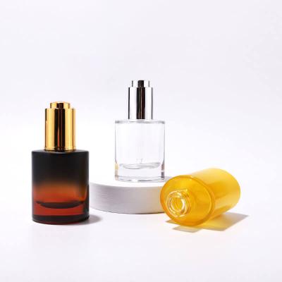 Wholesale empty cosmetic flat shoulder cylinder frosted matte customized color glass serum oil dropper bottle