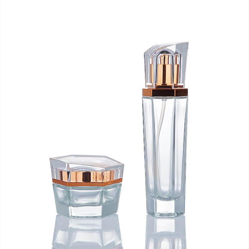Luxury Skincare Packaging Set Clear Cosmetic Glass Lotion Pump Bottles Container and Cream Jars