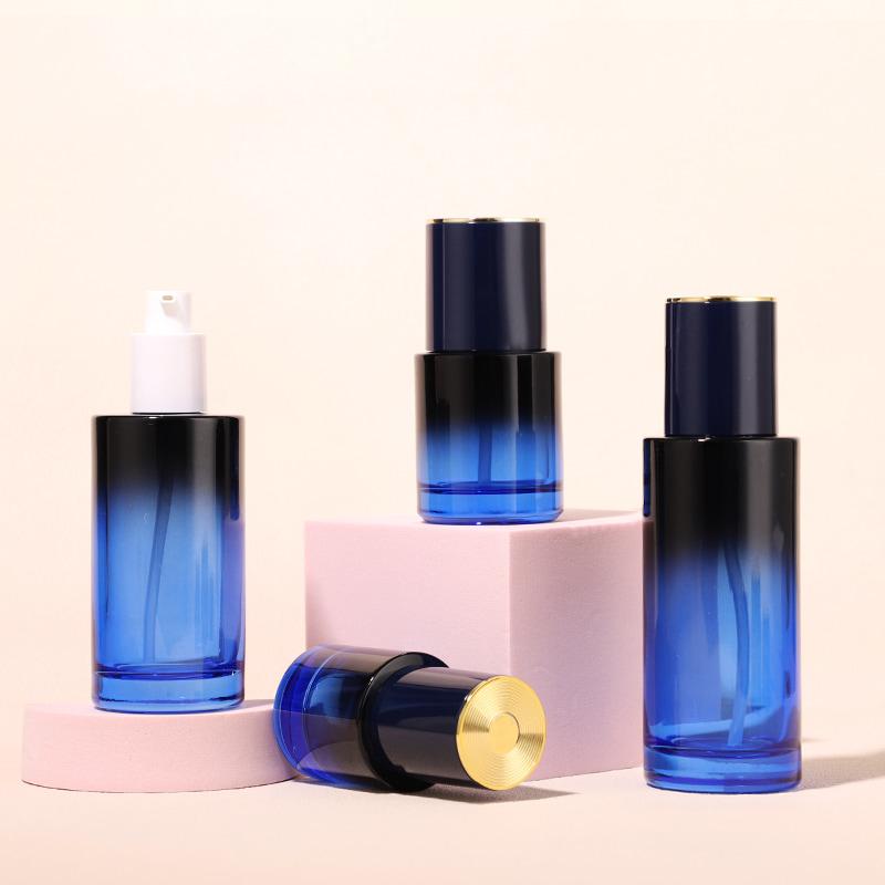 Smooth matte frosted bottle body with simple layered straight design,We provide 4 lotion bottle sizes (30ml, 50ml,100ml, 120ml) with three matching 20g,30g,50g cream jar, complete full-series skincare packaging.