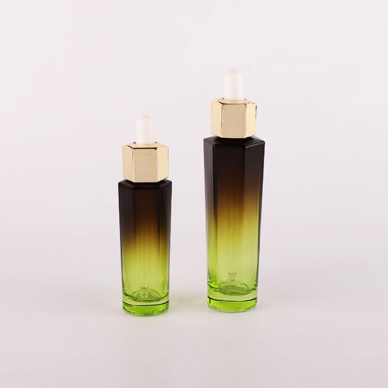 25Unique gradient color hexagon glass bottle with dropper for essential oil cosmetics packaging wholesale